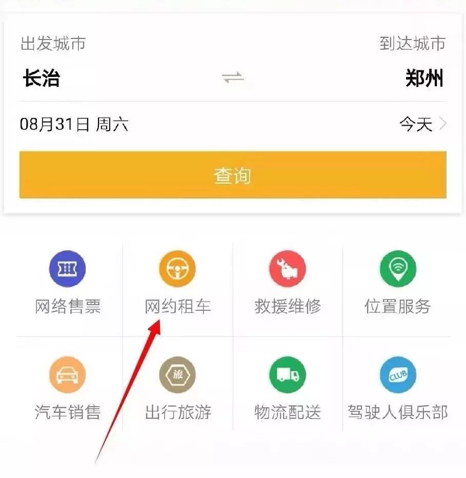 ① 点击“网约租车”