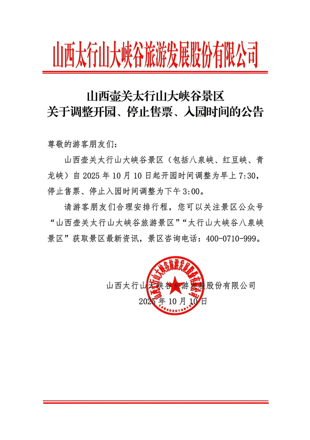 欢迎及时了解太行山大峡谷最新公告与新闻资讯