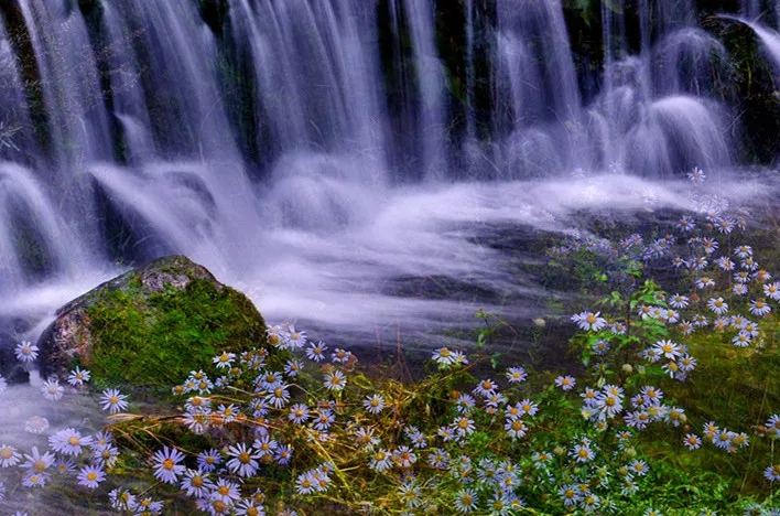 幽谷小河沿线缓缓而流,清澈透明,叮泠作响,如鸣佩环。抬头仰望那碧空如洗的蓝天与绝壁对峙的危崖,对大自然的敬畏之情不禁油然而生。