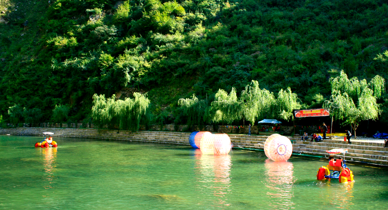 在雄伟的青龙峡的小九寨有一所水上乐园,乐园地貌独特、风景宜人、空气清新,三面环山。有娱乐设施皮划艇、水上滚筒和水上战船等。